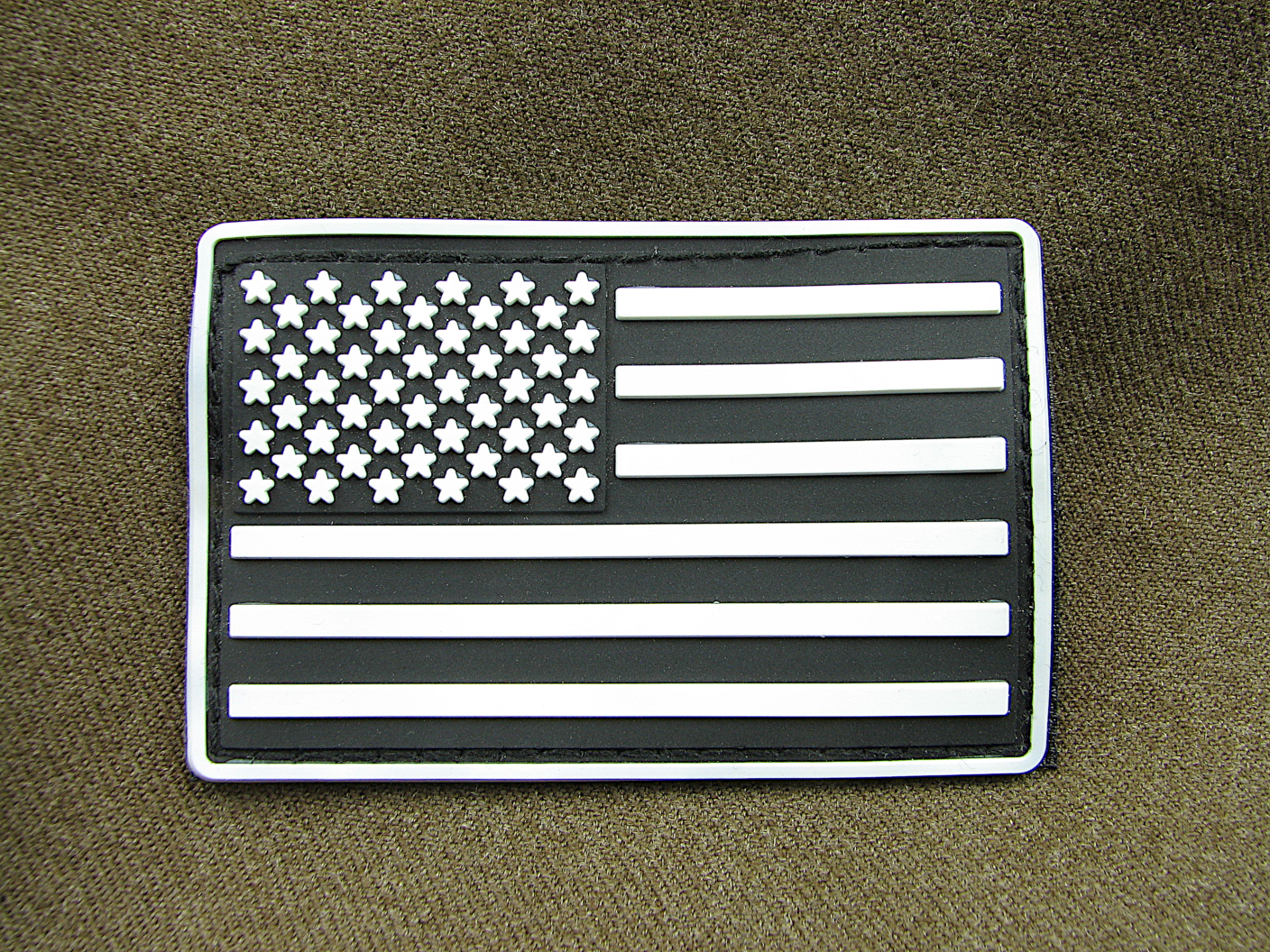 Monochrome rubberised US Flag “morale” patch with hook&loop fastener. Measures approximately 75mm X 50mm.