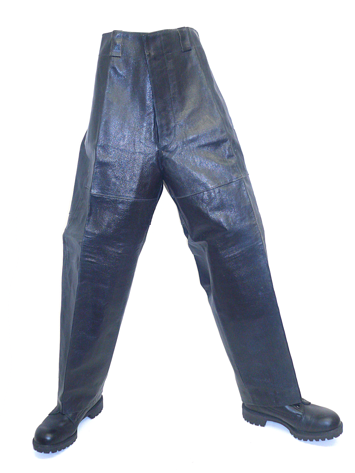 These leather trousers are Cold War era ex-Bulgarian Military, possibly used for Tank crew or Motorcycle dispatch riders.Once these cotton lined trousers have been given a bit of TLC with some leather dressing or Dubbin etc you will have a superb pair of leather trousers for a fraction of the normal price you would pay for such an item.They feature a button fly, two side slash pockets, belt loops and a rear cinch strap.Available in two sizes:
