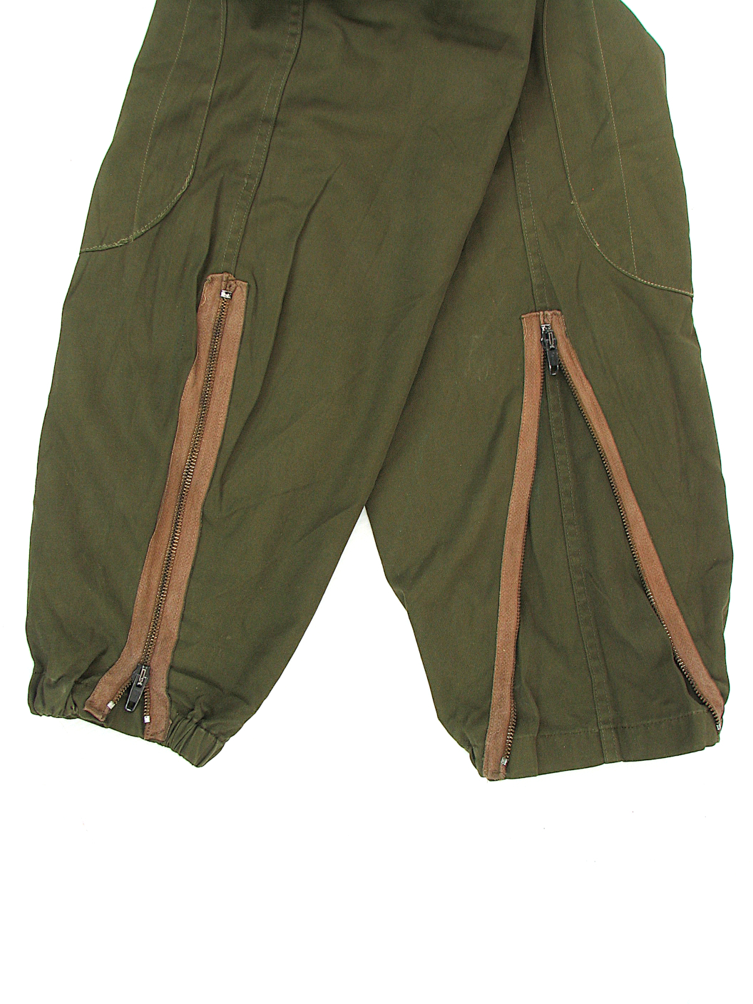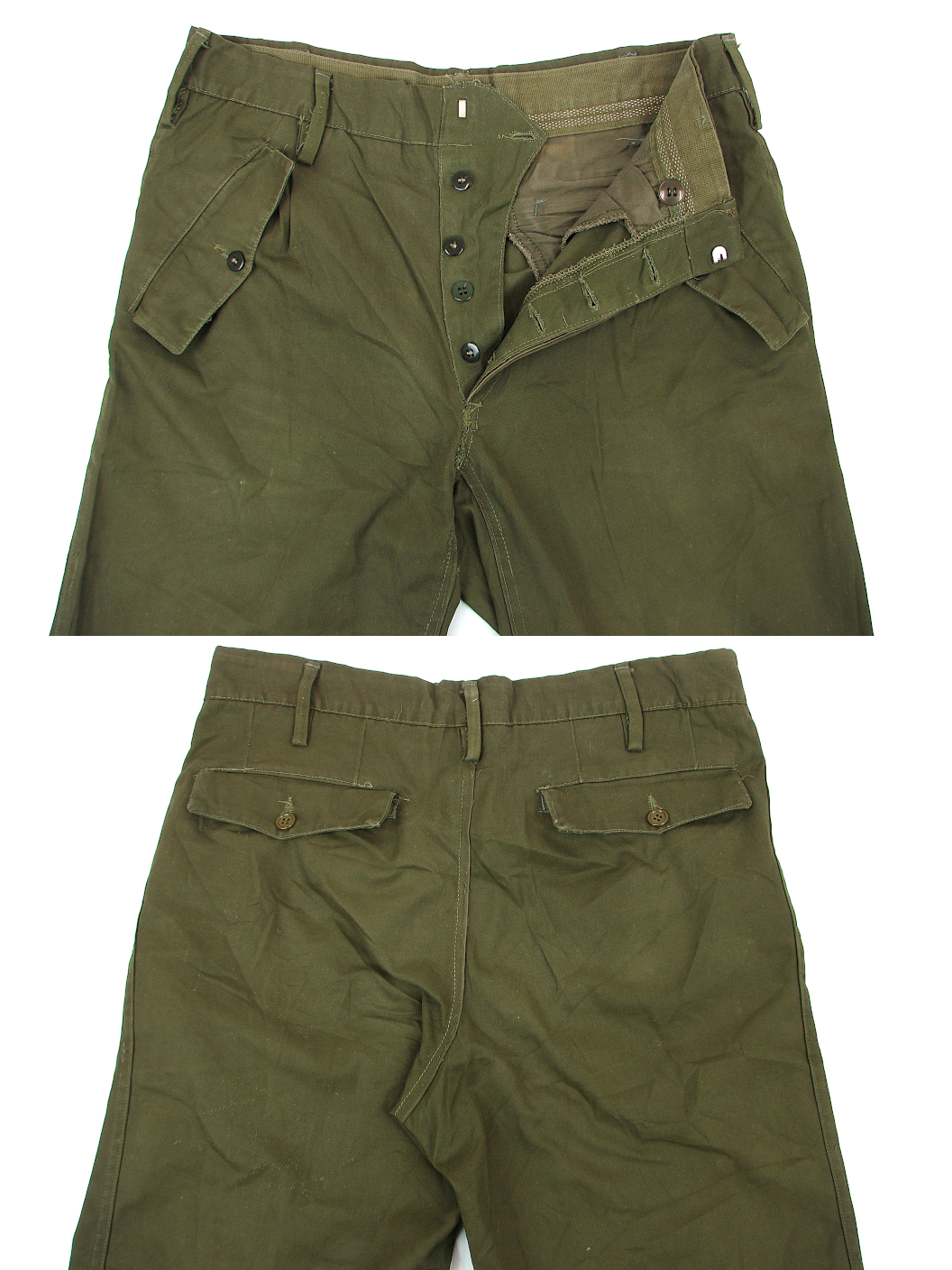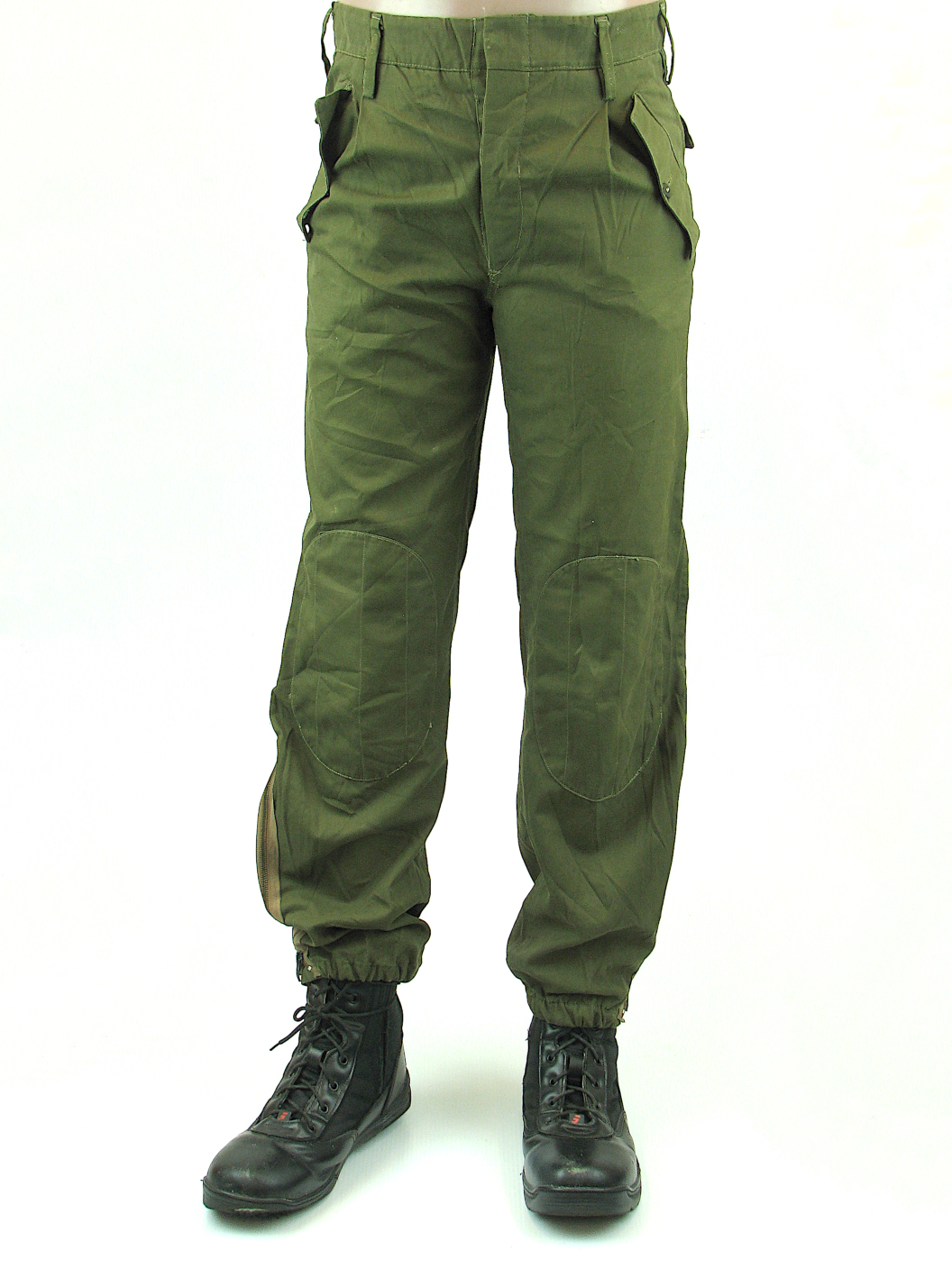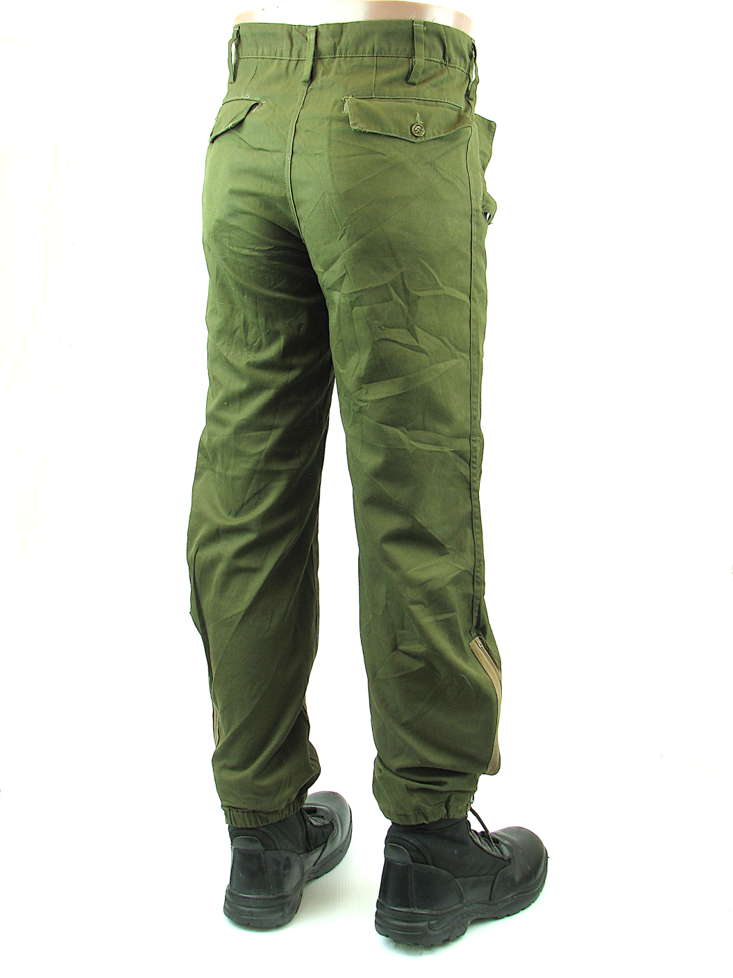 Coming to you from sunny Italy, these trousers equipped the “Esercito” during the 1970-80’s until they like everyone else went to camouflaged uniforms. Made from a medium weight cotton/polyester mix they feature two front and two hip pockets all covered with button flaps. The pleated front has a button fly and there are double layer pads on each knee. An interesting feature is the zip out expansion pleats on each leg cuff, like a pair of flight overalls. They are available in waist sizes 76cm, 80cm and 84cm. All leg lengths are roughly 76cm.