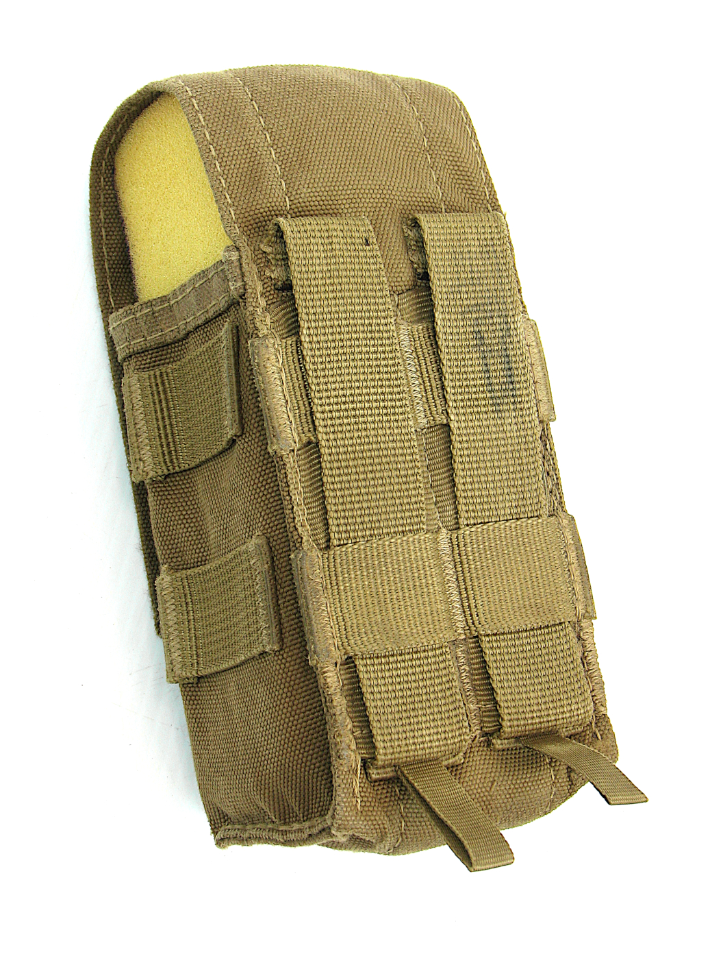 This type of pouch was used briefly by the NZ Army in conjunction with the MCU uniform and a complete coyote brown MOLLE equipment system. It has now been superseded by NZMTP equipment. Measuring 18cm H x 8cm W x 6cm D, the pouch closes with a hook&loop flap and is designed to hold two rifle magazines. On each side there are PALS tabs and on the rear two PALS strap for attaching to a vest. The pouches we have are used but in very good serviceable order.