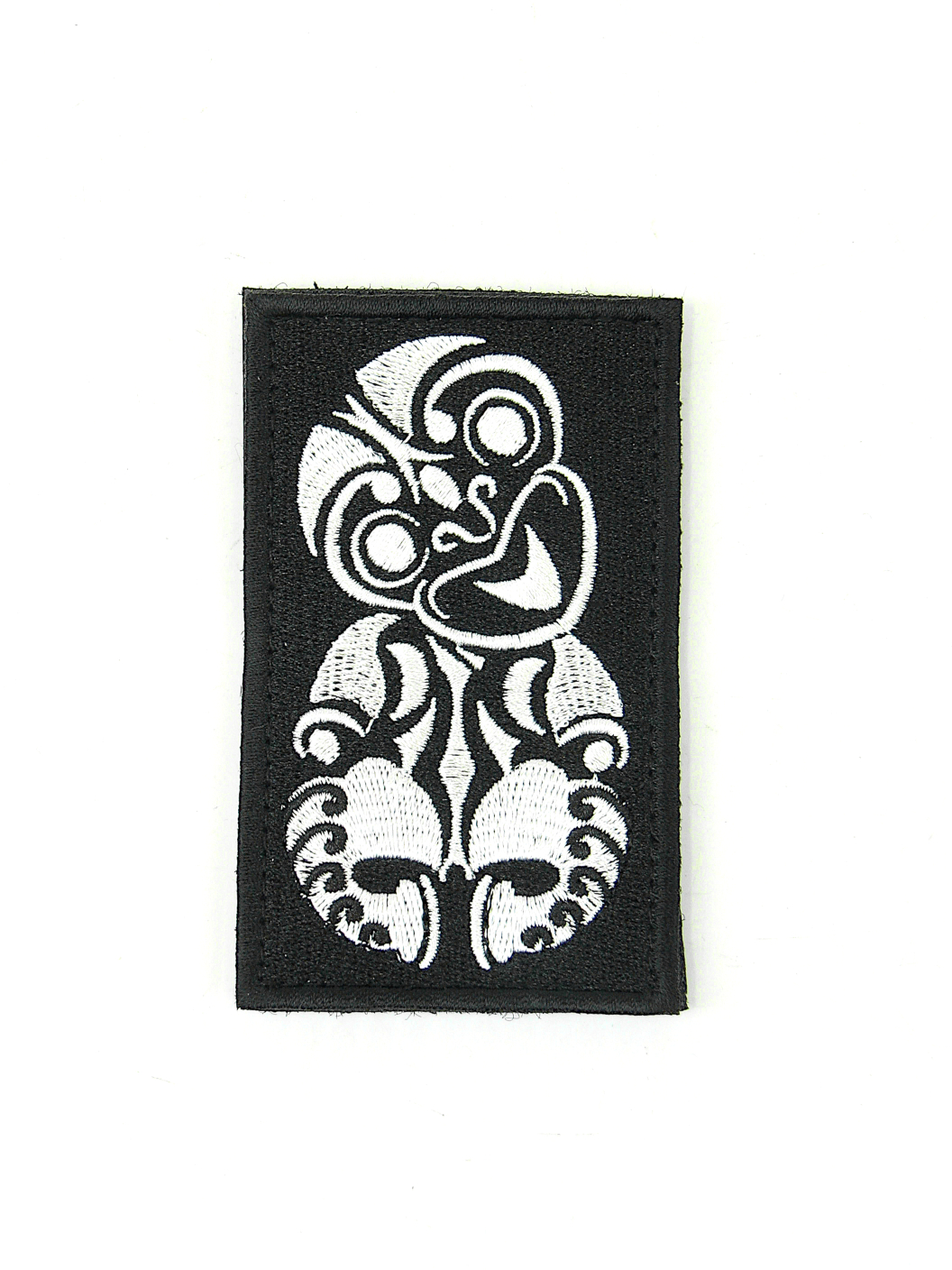 Embroidered patch of a New Zealand Maori Tiki featuring a hook & loop backing. Patch measures approximately 90 x 55mm.