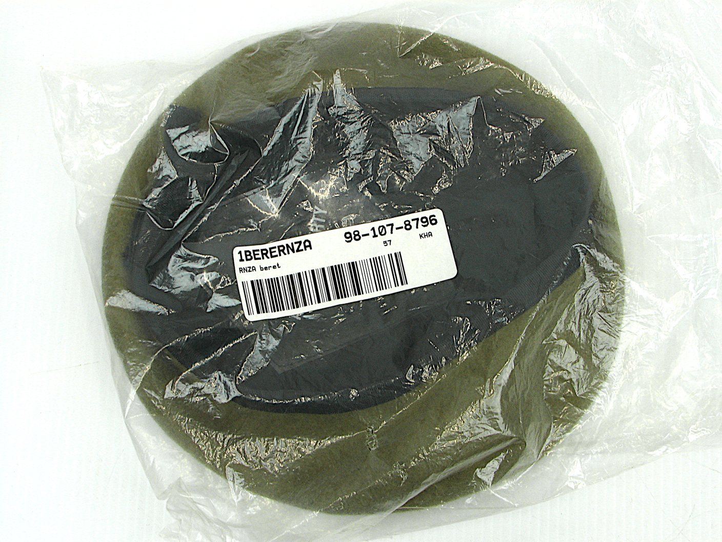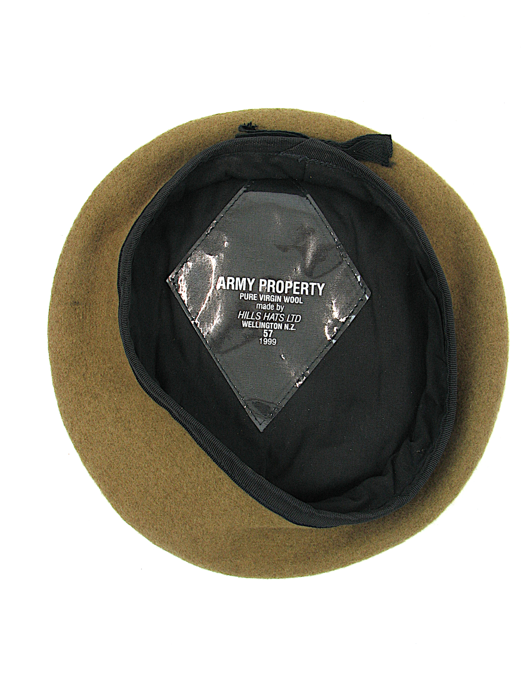 The Royal New Zealand Artillery Khaki beret was worn from 1984 to 1999 when the “One Army” policy saw the adoption of the standard Rifle Green Beret. Made by Hills Hats in 1999, this brand new, still in it’s QM bag, beret, features a nylon headband and is a 57cm size.