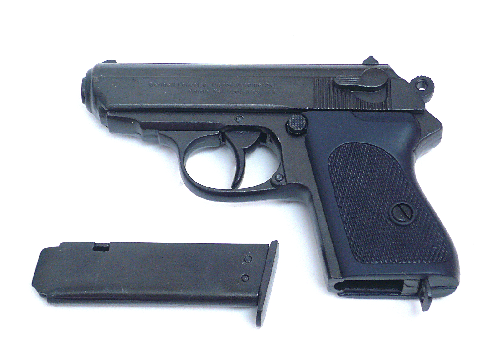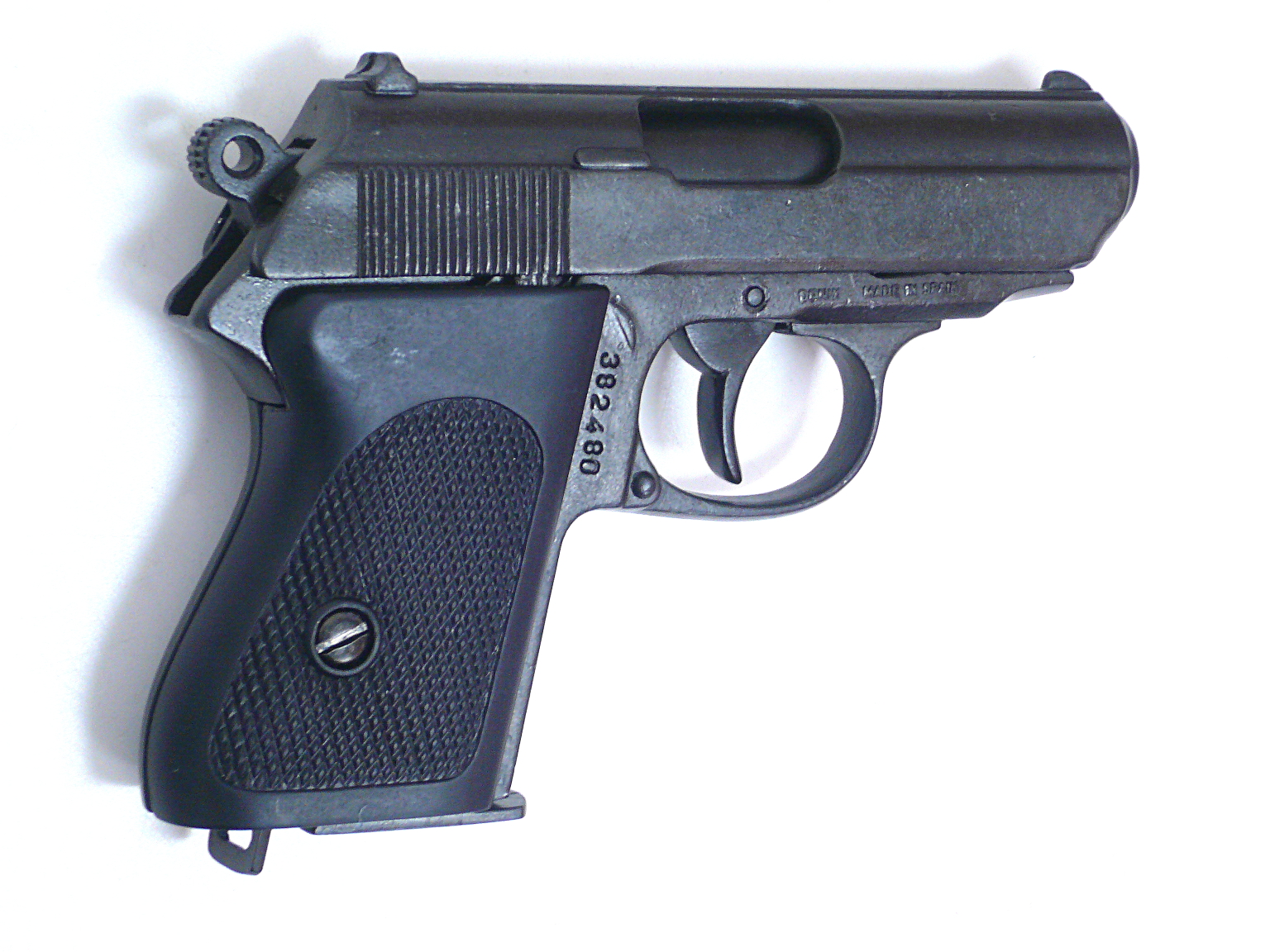 This is the Denix full sized die-cast non-firing imitation of the German Walther PPK which stood for Polizeipistole Kriminalmodell (Police pistol – Detective Model).First released in 1930 it went on to be used by many Police and Military forces and of course was the weapon of choice for Ian Flemings spy character James Bond.This replica features a removable magazine and a movable slide action which cocks the pistol.